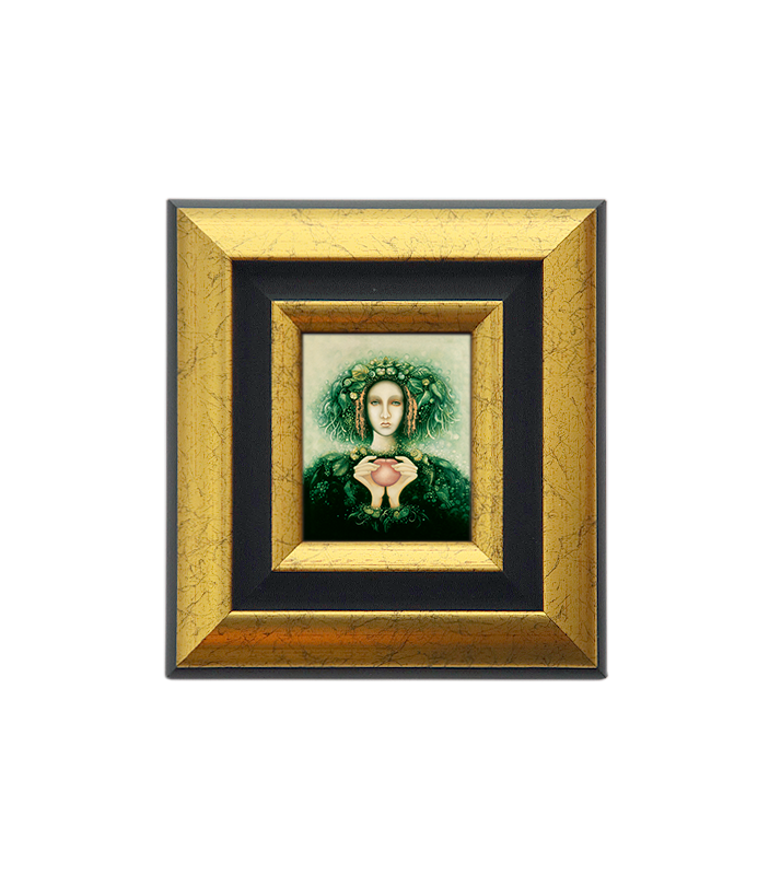 Slika je okvirjena in, pripravljena za obešanje.